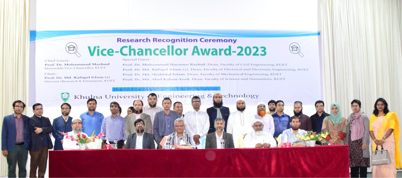 খুলনা প্রকৌশল ও প্রযুক্তি বিশ্ববিদ্যালয়ের (কুয়েট) ২৭ জন শিক্ষক ভাইস-চ্যান্সেলর অ্যাওয়ার্ড পেয়েছেন । ২০২৩ সালে হাই ইমপ্যাক্ট জার্নালে রিসার্চ পেপার প্রকাশের জন্যে কুয়েটের সংশ্লিষ্ট অনুষদের এক্সপার্ট প্যানেল যাচাই-বাছাই করে উচ্চ শিক্ষা ও গবেষণা কমিটির (সিএএসআর) সুপারিশক্রমে এই অ্যাওয়ার্ড প্রদান করা হয়। বুধবার বিকোলে বিশ্ববিদ্যালয়ের অডিটরিয়ামে প্রধান অতিথি হিসেবে উপস্থিত থেকে শিক্ষকদের মাঝে এই অ্যাওয়ার্ড প্রদান করেন বিশ্ববিদ্যালয়ের ভাইস-চ্যান্সেলর প্রফেসর ড. মুহাম্মদ মাছুদ। অনুষ্ঠানে বিশেষ অতিথি ছিলেন সিভিল ইঞ্জিনিয়ারিং অনুষদের ডিন প্রফেসর ড. মুহাম্মদ হারুনুর রশীদ, ইইই অনুষদের ডিন প্রফেসর ড. মো. রফিকুল ইসলাম, মেকানিক্যাল ইঞ্জিনিয়ারিং অনুষদের ডিন প্রফেসর ড. মো. সাহিদুল ইসলাম, সায়েন্স এন্ড হিউম্যানিটিস অনুষদের ডিন প্রফেসর ড. মো. আবুল কালাম আজাদ। সভাপতিত্ব করেন পরিচালক (গবেষণা ও সম্প্রসারণ) প্রফেসর ড. মোহা. রফিকুল ইসলাম।