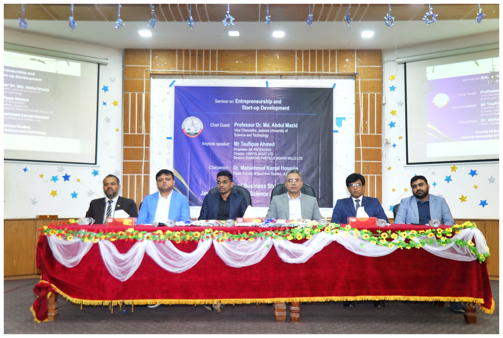 শিক্ষার্থীদের উদ্যোক্তা হিসেবে গড়ে তোলা ও স্টার্টআপ ডেভেলপমেন্ট নিয়ে যশোর বিজ্ঞান ও প্রযুক্তি বিশ^বিদ্যালয়ে (যবিপ্রবি) এক সেমিনার অনুষ্ঠিত হয়েছে। বুধবার সকালে যবিপ্রবির কেন্দ্রীয় গ্যালারিতে ‘এন্টারপ্রিনিউরশিপ অ্যান্ড স্টার্টআপ ডেভেলপমেন্ট’ শীর্ষক সেমিনারটি আয়োজন করে যবিপ্রবির ব্যবসায় শিক্ষা অনুষদ। সেমিনারে সভাপতি হিসেবে উপস্থিত ছিলেন ব্যবসায় শিক্ষা অনুষদের ডিন ড. মোহাম্মদ কামাল হোসেন।