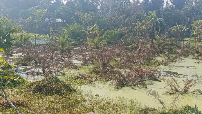 মনিরামপুরে খেজুর গাছ রিসার্চ গার্ডেন জলাবদ্ধতায় ক্ষতিগ্রস্থ হয়েছে