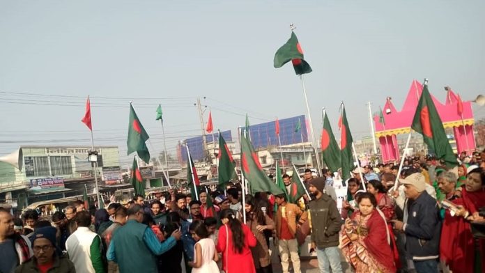 এছাড়া মহান বিজয় দিবস উপলক্ষ্যে বর্ণাঢ্য শোভাযাত্রা করেছে যশোর জেলা বিএনপি। আহ্বায়ক অধ্যাপক নার্গিস বেগমের নেতৃত্বে শোভাযাত্রায় অন্যান্যের মধ্যে উপস্থিত ছিলেন দলের জাতীয় নির্বাহী কমিটির ভারপ্রাপ্ত সাংগঠনিক সম্পাদক (খুলনা বিভাগ) অনিন্দ্য ইসলাম অমিত।
