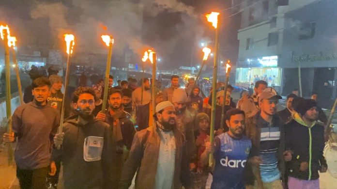 গুপ্তহত্যার প্রতিবাদে নড়াইলে বৈষম্য বিরোধী ছাত্র আন্দোলনের মশাল মিছিল