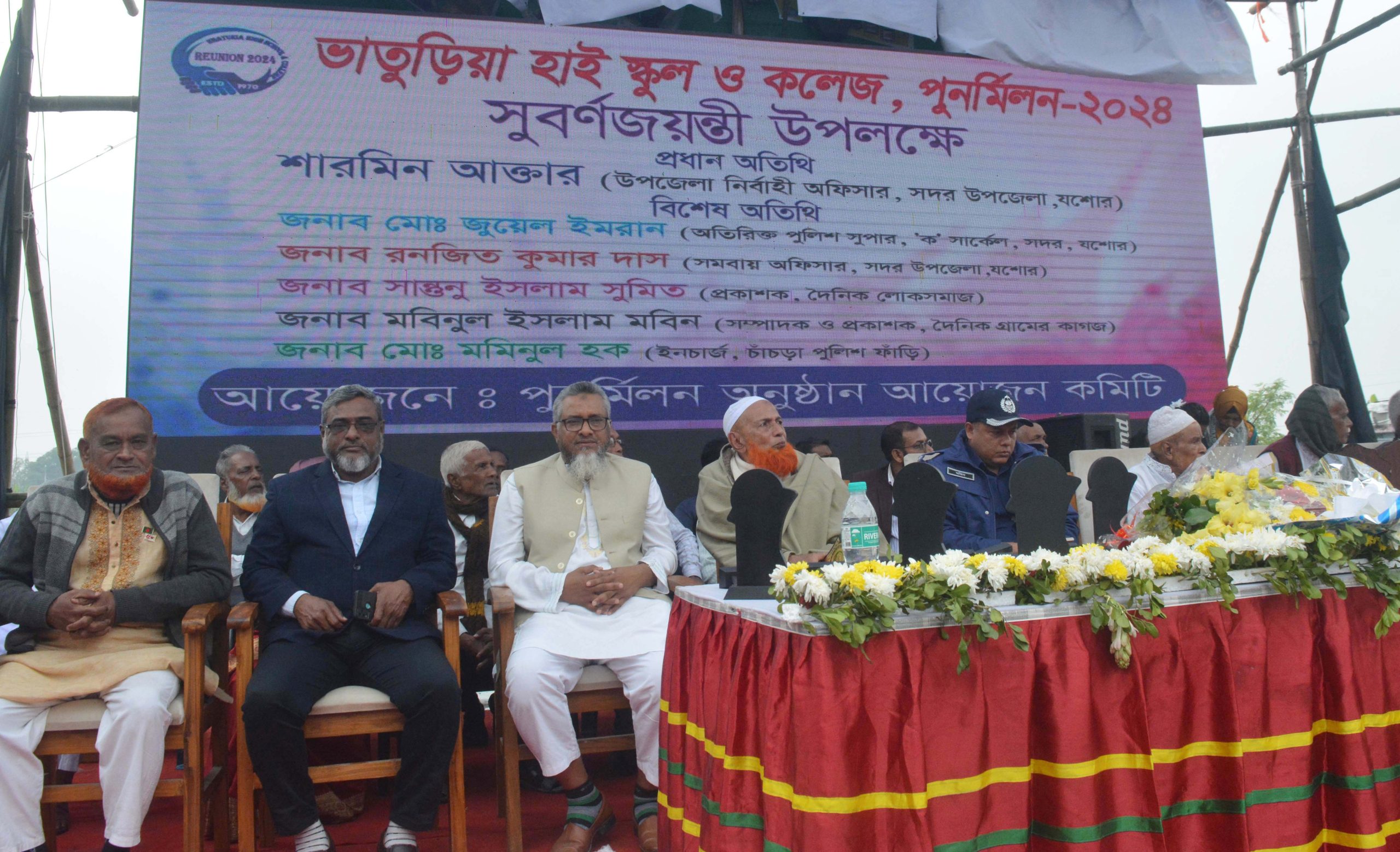 স্টাফ রিপোর্টার ॥ যশোর শহরতলী ভাতুড়িয়া হাই স্কুল এন্ড কলেজের প্রাক্তন শিক্ষার্থীদের দুই দিনব্যাপী পুনর্মিলনী অনুষ্ঠান গতকাল শনিবার শেষে হয়েছে। প্রতিষ্ঠানের সুবর্ণ জয়ন্তী উপলক্ষে প্রাক্তন শিক্ষার্থীদের আয়োজনে এ হয়। অনুষ্ঠান জুড়ে ছিল শোভাযাত্রা, আলোচনা সভা, স্মৃতিচারণ, খেলাধূলা, সম্মাননা প্রদানস ও সাংস্কৃতিক পরিবেশনা।