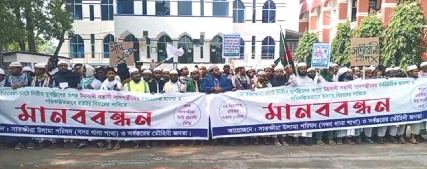 টঙ্গীতে সাদপন্থীদের হামলার প্রতিবাদে সাতক্ষীরায় মানববন্ধন