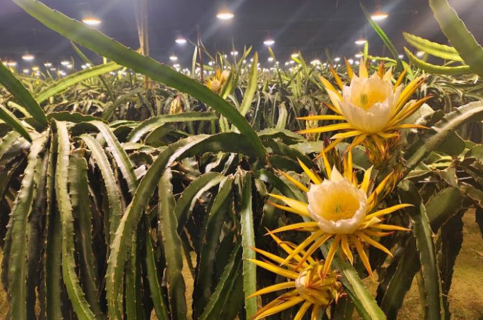 চৌগাছায় ড্রাগন বাগান আলোকিত করে বেশি ফলনের আশা