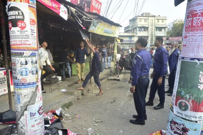 স্টাফ রিপোর্টার ॥ পুলিশ সুপারের নির্দেশে যশোর শহরের গুরুত্বপূর্ণ সড়কের ফুটপাতে অবৈধ স্থাপনা উচ্ছেদ অভিযান শুরু হয়েছে। বৃহস্পতিবার বিকেলে যশোর কোতয়ালি থানা পুলিশের একটি দল শহরের মুজিব সড়ক ও দড়াটানা এলাকার বিভিন্ন স্থানে অভিযান চালিয়ে অবৈধ স্থাপনা তুলে দেয়। এ কার্যক্রম অব্যাহত থাকবে বলে জানিয়েছেন জেলা পুলিশের কর্মকর্তারা।