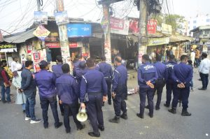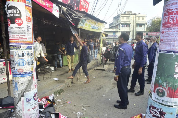 যশোরে ফুটপাতের অবৈধ দখল উচ্ছেদে নেমেছে পুলিশ