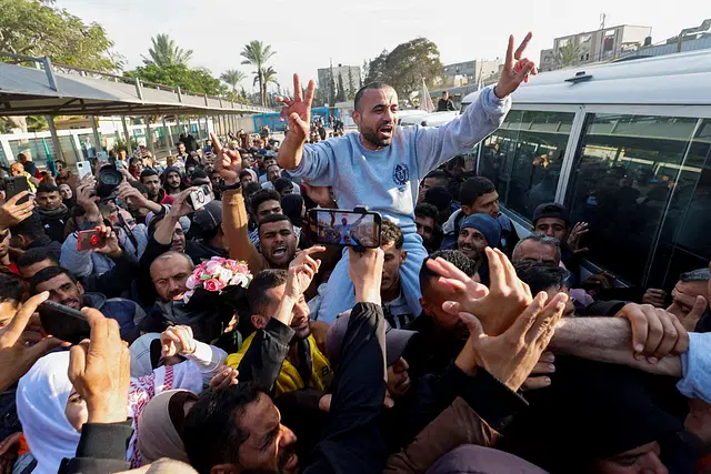 কাতার, মিসর ও যুক্তরাষ্ট্রের মধ্যস্থতায় গত রোববার গাজায় যুদ্ধবিরতি কার্যকর হয়। এর মধ্য দিয়ে ১৫ মাসের এ যুদ্ধের আপাতত ইতি ঘটেছে। এরপর আজ দ্বিতীয় দফায় ফিলিস্তিনি ও ইসরায়েলিরা মুক্তি পেলেন। এর আগে প্রথম দফায় হামাস তিন জিম্মিকে ছেড়ে দেয়। এর বদলে ইসরায়েলের কারাগারগুলো থেকে মুক্তি পান ৯০ জন ফিলিস্তিনি বন্দী। যুদ্ধবিরতি চুক্তির আওতায় ধাপে ধাপে হামাস জিম্মিদের ছেড়ে দেবে। পাশাপাশি ফিলিস্তিনি বন্দীদেরও মুক্তি দেবে ইসরায়েল।