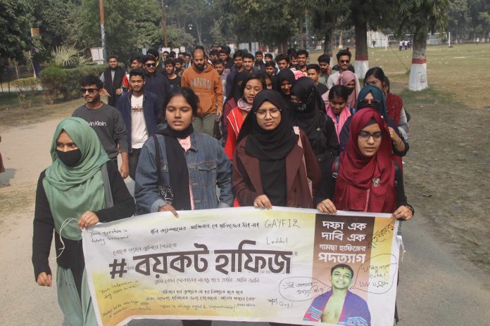 ইবি সংবাদদাতা॥ ছাত্রী হেনস্তা, সমকামিতা উৎসাহিতসহ নানা অভিযোগে ইসলামী বিশ্ববিদ্যালয়ের (ইবি) ডেভেলপমেন্ট স্টাডিজ বিভাগের সহকারী অধ্যাপক হাফিজুল ইসলামের বিরুদ্ধে প্রশাসনের সিদ্ধান্তকে প্রত্যাখ্যান করেছেন বিভাগটির শিক্ষার্থীরা। তারা তার স্থায়ী অপসারণের দাবিতে উপাচার্য বাসভবন ঘেরাও করেছেন।