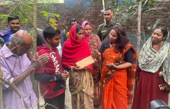 শ্যামনগর (সাতক্ষীরা) সংবাদদাতা ॥ মেডিকেল কলেজে ভর্তির সুযোগ পাওয়ায় অসহায় জয় কর্মকারকে আর্থিক সহায়তা দিয়েছে প্রশাসন। বুধবার বিকেলে উপজেলার মুন্সিগঞ্জ ইউনিয়নের হরিনগর গ্রামে গিয়ে জয় কর্মকারকে মেডিকেল কলেজে ভর্তির জন্য আর্থিক সহায়তা করেন উপজেলা নির্বাহী কর্মকর্তা। জয় কর্মকার হরিনগর গ্রামের অশোক কর্মকারের ছেলে। তাকে জেলা প্রসাশক (ডিসি) মো. মোস্তাক আহমেদ এর পক্ষ থেকে ২০ হাজার টাকা এবং উপজেলা নিবার্হী কর্মকর্তা (ইউএনও) মোছা. রনী খাতুন এর পক্ষ থেকে ১৫ হাজার টাকা সহায়তা দেওয়া হয়। উপজেলা নির্বাহী কর্মকর্তা বলেন, ‘জয়ের সফলতা ও মেধা আমাকে এখানে আসতে বাধ্য করেছে। জয় কর্মকার এই অঞ্চলের মানুষের গর্ব। সে আরও ভালো কিছু করবে, সেই দোয়া করি।’