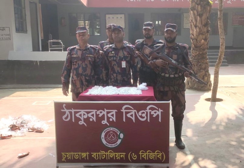 এ সময় ভারতের অভ্যন্তর থেকে এক ব্যক্তি অবৈধভাবে বাংলাদেশে  প্রবেশ করে। এমতবস্থায় বিজিবি সদস্যরা ওই ব্যক্তিকে ধাওয়া করলে সে তার হাতে থাকা একটি বস্তা ভুট্টা ক্ষেতের মধ্যে ফেলে ভারতের অভ্যন্তরে পালিয়ে যায়। বস্তাটি জনসম্মুখে তল্লাশী করে সেখান থেকে স্কচটেপ মোড়ানো ছোটবড় ৩০টি প্যাকেট উদ্ধার করে বিজিবি। প্যাকেটগুলো খুলে সেখান থেকে অবৈধ ১৪ কেজি ৯০০ গ্রাম ওজনের রূপা উদ্ধার করে জব্দ করা হয়।