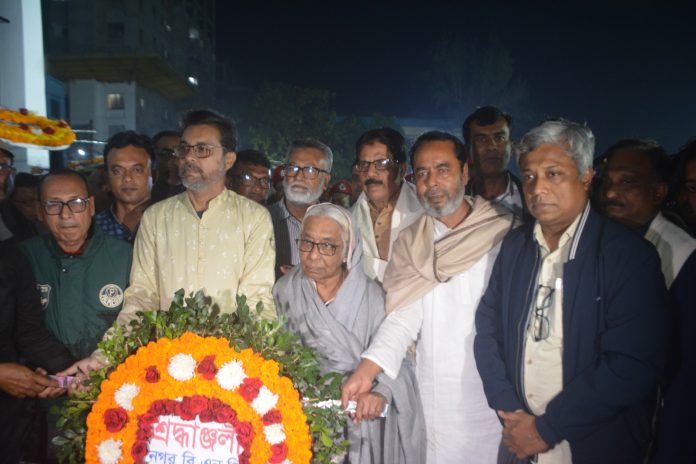 একুশের প্রথম প্রহরে যশোর কেন্দ্রীয় শহীদ মিনারে মানুষের ঢল