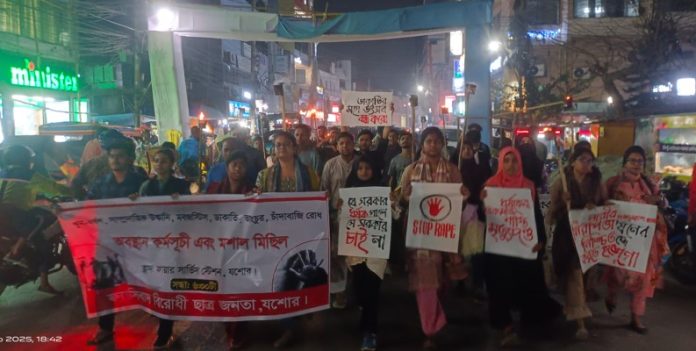 যশোরে ফ্যাসিবাদবিরোধী ও বৈষম্যবিরোধী ছাত্র আন্দোলনের মশাল মিছিল