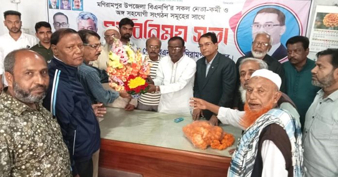 স্টাফ রিপোর্টার,মনিরামপুর(যশোর)॥ মনিরামপুরে নবনির্বাচিত উপজেলা বিএনপির সভাপতি শহীদ ইকবাল হোসেনকে বীর মুক্তিযোদ্ধাদের পক্ষ থেকে সংবর্ধনা প্রদান করা হয়েছে।