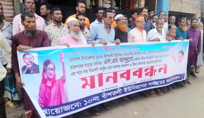 মানববন্ধনে উপস্থিত ছিলেন, বাঁশতলী ইউনিয়ন বিএনপির সভাপতি এস, এম আব্দুল্লাহ, সাধারণ সম্পাদক ফকির আবু জাফর, বিএনপি নেতা আহসান তারেক, শেখ আল মামুন, শেখ গোলাম হোসেন, বাকী বিল্লাহ, শেখ কামরুল ইসলাম, শেখ আরিফ হোসেন,অহিদুল ইসলাম, শেখ মুজিবুর রহমান, হারুন রাজাসহ ৩ শতাধিক বিএনপি নেতা-কর্মী, জমির মালিক এবং স্থানীয় বাসিন্দাগণ।