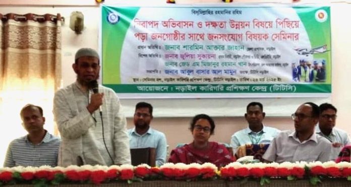 নড়াইল সংবাদদাতা ॥ নড়াইলে নিরাপদ অভিবাসন ও দক্ষতা উন্নয়ন বিষয়ে পিছিয়ে পড়া জনগোষ্ঠীর সাথে জনসংযোগবিষয়ক সেমিনার অনুষ্ঠিত হয়েছে। রোববার দুপুরে নড়াইল কারিগরি প্রশিক্ষণ কেন্দ্রের আয়োজনে এ সেমিনার অনুষ্ঠিত হয়। প্রশিক্ষণ কেন্দ্রের সেমিনার হলে অনুষ্ঠিত এ সেমিনারে প্রধান অতিথি হিসেবে বক্তব্য দেন স্থানীয় সরকার শাখার উপ-পরিচালক জুলিয়া সুকায়না।