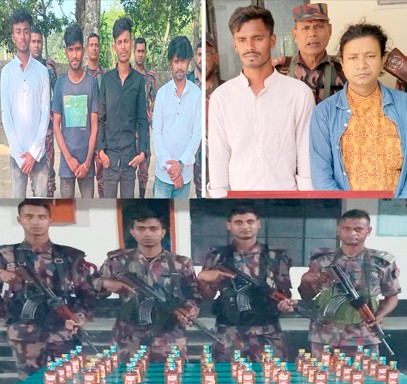 একই সময় খোশালপুর সীমান্ত এলাকা থেকে ভারতে যাওয়ার সময় নারী-পুরুষ ও শিশুসহ ৭ জন আটক হয়। এ ছাড়া এদিন রাতে উপজেলার পলিয়ানপুর বিজিবি ক্যাম্পের সদস্যরা সীমান্তের একটি তামাক ক্ষেতের ভেতর থেকে ৪৮ বোতল ফেনসিডিল জব্দ করে।