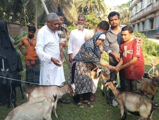 মোরেলগঞ্জে তাঁতীদল নেতার ছাগল বিতরণ