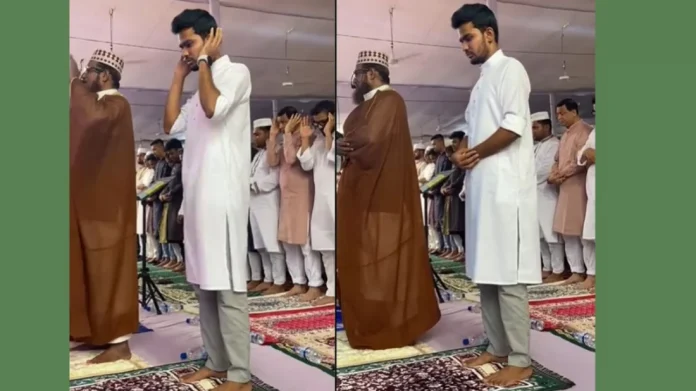লোকসমাজ ডেস্ক ।। ঢাকার বাংলাদেশ-চীন মৈত্রী সম্মেলন কেন্দ্রের পাশে পুরোনো বাণিজ্যমেলার মাঠে সোমবার ঈদুল ফিতরের নামাজের আয়োজন করে ঢাকা উত্তর সিটি করপোরেশন (ডিএনসিসি)। সেখানে উপস্থিত হয়ে নামাজ আদায় করেন সরকারের উপদেষ্টা আসিফ মাহমুদ। নামাজে তার কাতারে দাঁড়ানোর দৃশ্যের ছবি এবং এক দিক থেকে করা ভিডিও নিয়ে দিনভর আলোচনা ছিল সোশ্যাল মিডিয়ায়।