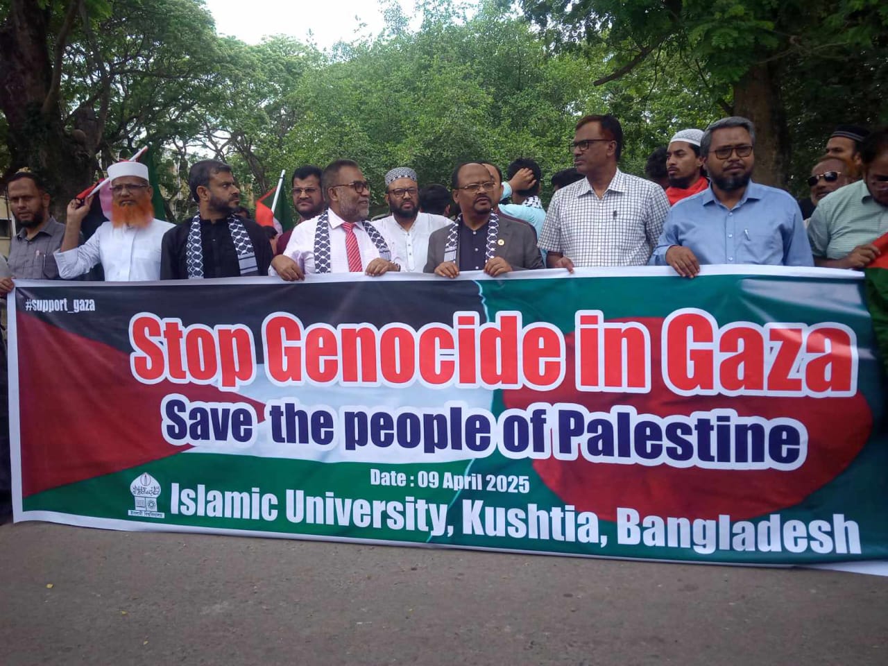 ফিলিস্তিনে গণহত্যার প্রতিবাদে ইবিতে শাটডাউন ও মানববন্ধন