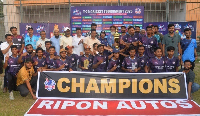স্পোর্টস রিপোর্টার ॥ যশোর এক্স-ক্রিকেটার্স অ্যাসোসিয়েশন আয়োজিত টি-২০ ক্রিকেটে চ্যাম্পিয়ন হয়েছে রিপন অটোস। বুধবার যশোর শামস-উল-হুদা স্টেডিয়ামে অনুষ্ঠিত টুর্নামেন্টের প্রতিদ্বন্দ্বিতাপূর্ণ ফাইনাল খেলায় হ্যালো পান্ডাকে ১৩ রানে পরাজিত করে রিপন অটোস।