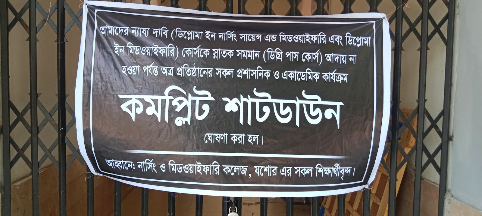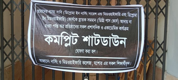 নার্সিং শিক্ষার্থীদের ‘শাট ডাউন’ ঘোষণা, যশোর নার্সিং কলেজে তালা