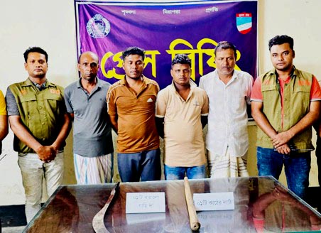 আটককৃতরা হলো: দুর্গাপুর গ্রামের মোমিন মিয়া (৫০) ও তার ছেলে সেলিম মিয়া (৩২), আব্দুল আজিজের ছেলে রমজান আলী (৩০) এবং মৃত তৈয়ব আলীর ছেলে আক্তার হোসেন (৪০)।