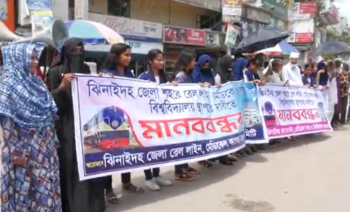 ঝিনাইদহে রেললাইন, মেডিকেল কলেজ স্থাপনের দাবিতে মানববন্ধন
