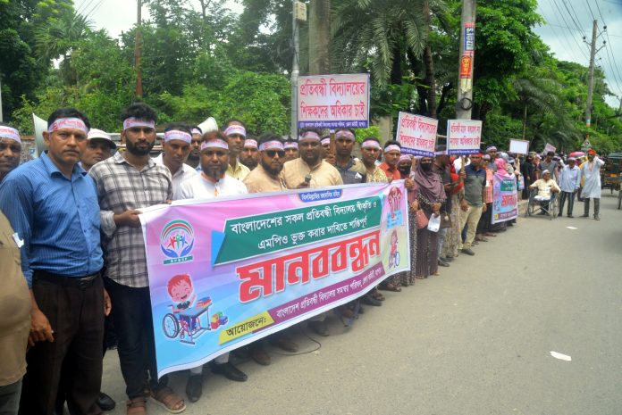 যশোরে প্রতিবন্ধী বিদ্যালয় এমপিওভুক্তের দাবিতে শিক্ষক-কর্মচারীদের মানববন্ধন