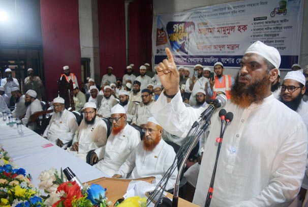 মাওলানা মামুনুল হক বলেন, স্বৈরাচারী শেখ হাসিনা খেলাফত মজলিসকে ধ্বংস করার পায়তারা করেছিলেন এবং তাদের এমন কোনো নেতা নেই যাদের জেলখানায় নির্যাতন করা হয়নি। এরপরও তারা কোনোদিন স্বৈরাচারের কাছে মাথানত করেননি।