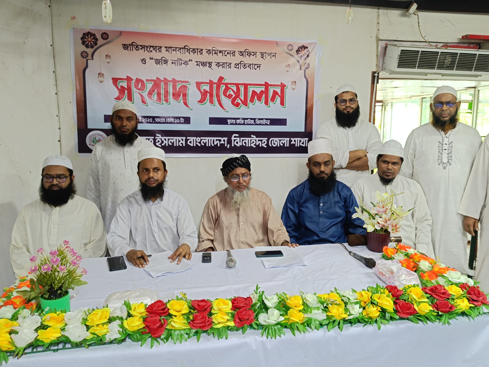 রোববার সকালে শহরের কফি হাউজ মিলনায়তনে এ সংবাদ সম্মেলনের আয়োজন করে বাংলাদেশ হেফাজতে ইসলাম ঝিনাইদহ জেলা শাখা। এতে দলটির জেলা শাখার সভাপতি মুফতী আরিফ বিল্লাহ কাসেমী, সহ-সভাপতি মুফতি জাকারিয়া, মুফতী এজাজ, যুগ্ম সম্পাদক মুফতী যোবায়ের, অর্থ সম্পাদক মুফতি ইলিয়াস, সহ-সাংগঠনিক সম্পাদক মাওলানা আশরাফসহ অন্যান্যরা উপস্থিত ছিলেন।
