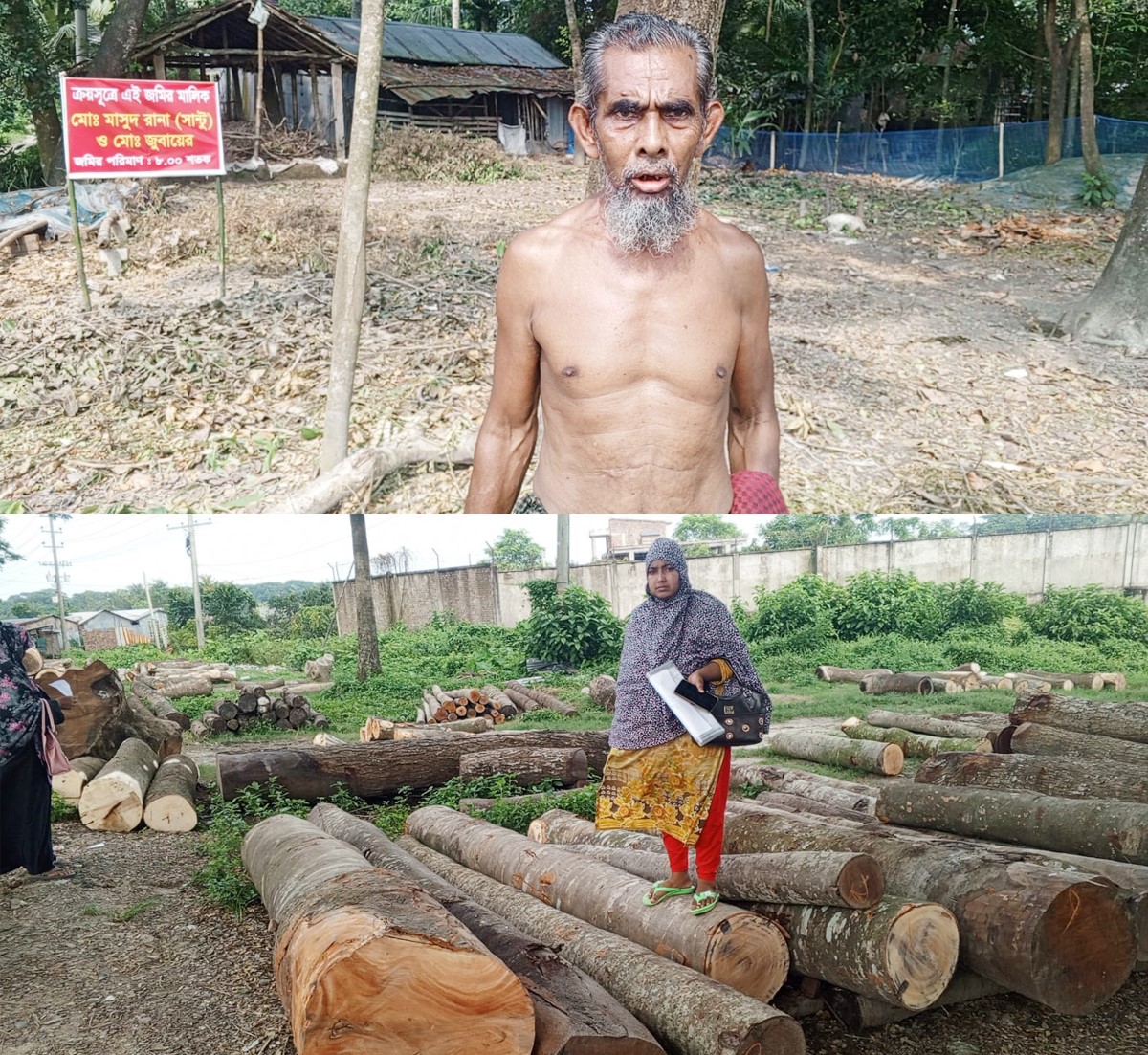 জানা যায়, খাইবার আলী গোলদারের জমিতে অন্তত আড়াই লাখ টাকা মূল্যের বিভিন্ন প্রজাতির গাছ ছিল। সম্প্রতি গাছগুলো জোর করে বিক্রি করে দেয় স্থানীয় আওয়ামী লীগ নেতা মাসুদ রানা সান্টু। বিক্রি করা ওই গাছগুলো কেটে ফেলে কাঠ ব্যবসায়ী জাহাঙ্গীর আলম। কিন্তু পরিবারের লোকজন বাধার কারণে কাটা গাছগুলো তারা নিতে পারেনি।