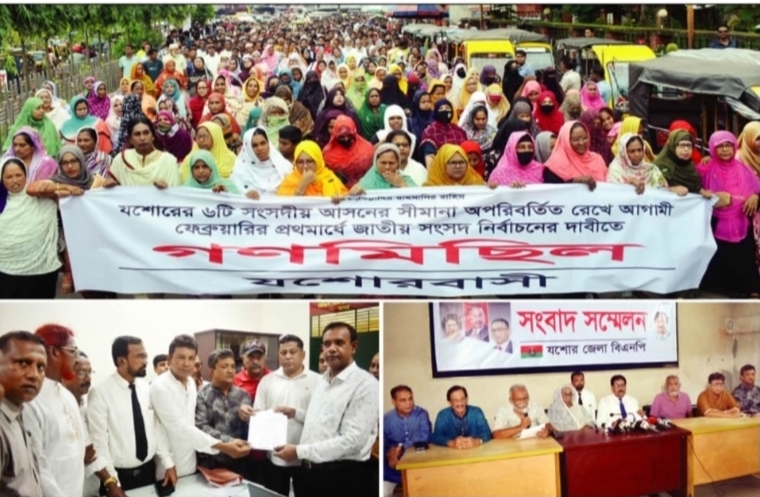 বুধবার সকাল থেকে সদর আসনের সাধারণ ভোটাররা শহরে গণমিছিল করে এবং সিনিয়র জেলা নির্বাচন অফিসারের কার্যালয়ে অবস্থান নেন। এদিকে বিদ্যমান আসনসীমানা অক্ষুণ্ণ রেখে ঘোষিত সময়ের মধ্যে আসন্ন জাতীয় নির্বাচন অনুষ্ঠানের দাবিতে সংবাদ সম্মেলন করে জেলা বিএনপি। লিখিত বক্তব্যে জেলা বিএনপির সাধারণ সম্পাদক দেলোয়ার হোসেন খোকন বলেন, ‘একটি মহল যশোরের দীর্ঘদিনের ইতিহাস-ঐতিহ্যের বিচ্যুতি ঘটিয়ে সংসদীয় আসন পুনর্বিন্যাসের চেষ্টা করছে। আগামী জাতীয় সংসদ নির্বাচনের সম্ভাব্য সময় ইতোমধ্যে অন্তর্বর্তী সরকারের প্রধান উপদেষ্টা প্রফেসর ড. মো. ইউনুস জাতির সামনে স্পষ্ট করেছেন। নির্বাচন কমিশনও নির্বাচনের রোডম্যাপ ঘোষণার প্রস্তুতি নিচ্ছে। আপামর জনসাধারণ ফ্যাসিবাদমুক্ত জনমতকে গুরুত্ব দেওয়ার আহ্বান ও