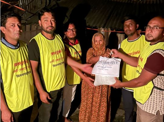 শুক্রবার রাতে বাড়ি বাড়ি গিয়ে সংগঠনের সদস্যরা এসব খাদ্যসামগ্রী পৌছে দেন।