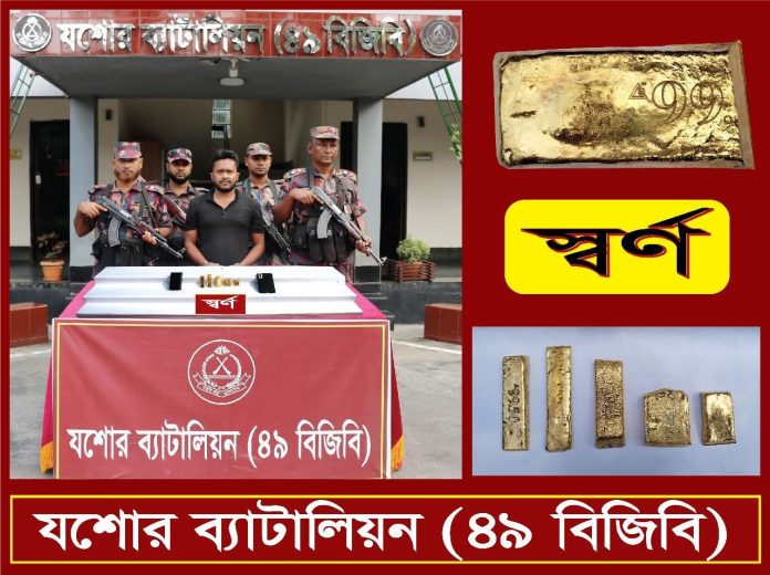 যশোরে কোটি টাকা মূল্যের সোনার পাঁচটি বারসহ পাচারকারী আটক
