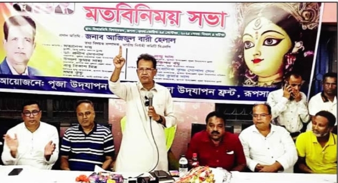 বৃহস্পতিবার খুলনার রূপসা উপজেলার কাজদিয়ায় বিআরডিবি মিলনায়তনে পূজা উদযাপন পরিষদ ও পূজা উদযাপন ফ্রন্ট আয়োজিত মতবিনিময় সভায় প্রধান অতিথির বক্তব্যে তিনি এ কথা বলেন।