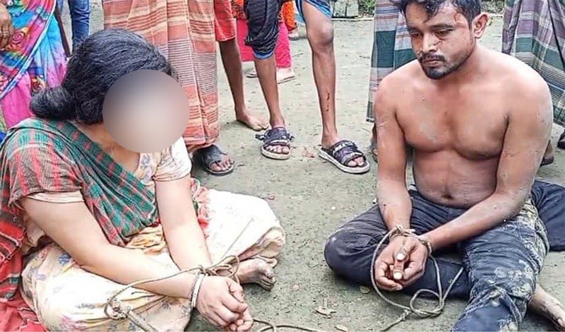 পরদিন রোববার সকালে স্থানীয় গণ্যমান্যদের নিয়ে স্বামী তালা খুলে কতিথ প্রেমিক রাকেশসহ তার স্ত্রীকে ঘর থেকে বের করে বেঁধে মারপিট করেন। এক পর্যায়ে হাজিরহাট পূজা উদযাপন কমিটির সভাপতি বিকাশ রায়, হরিদাসকাটি ইউনিয়ন বিএনপির সাধারণ সম্পাদক নবিরুজ্জমান আজাদসহ এলাকার গণ্যমান্য ব্যক্তির উপস্থিতিতে বিষয়টি নিয়ে সালিশ হয়।