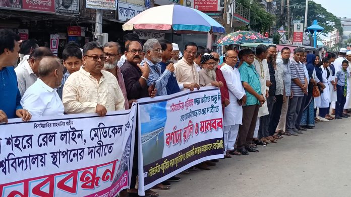 ঝিনাইদহে রেললাইন ও মেডিকেল কলেজের দাবিতে মানববন্ধন