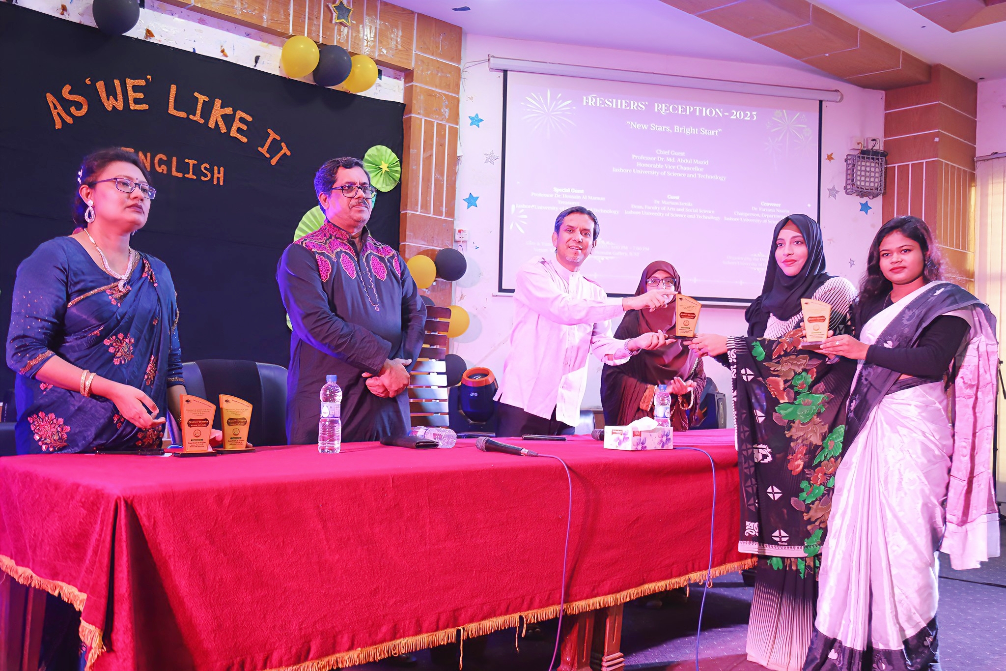 লোকসমাজ ডেস্ক ॥ নবীন শিক্ষার্থীদের ক্রেস্ট ও ফুলেল শুভেচ্ছা, বিভিন্ন ব্যাচে প্রথম স্থান অর্জনকারী শিক্ষার্থীদের সম্মাননা স্মারক প্রদান ও সাংস্কৃতিক অনুষ্ঠানের মধ্যে দিয়ে যশোর বিজ্ঞান ও প্রযুক্তি বিশ্ববিদ্যালয়ের (যবিপ্রবি) ইংরেজি বিভাগের নবীনবরণ অনুষ্ঠিত হয়েছে।