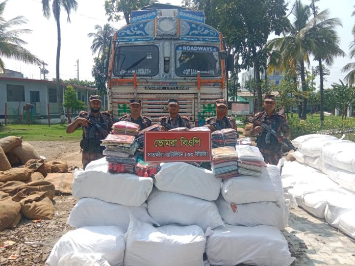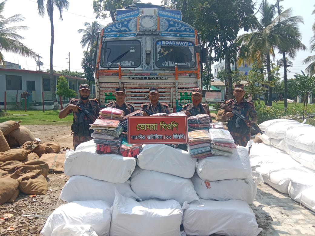 ভোমরা স্থলবন্দরে খৈলের ট্রাকে থেকে বিপুল ভারতীয় শাড়ি থ্রি-পিস ও ফেনসিডিল উদ্ধার