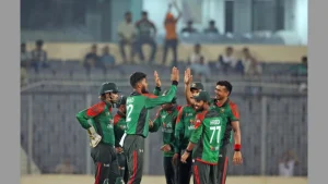 ২০৮ রানের লক্ষ্য তাড়া করতে নেমে ৩৯ ওভারে ১৩৩ রানে গুটিয়ে গেলো ওয়েস্ট ইন্ডিজ। মিরপুরে সিরিজের প্রথম ওয়ানডেতে বাংলাদেশ পেলো ৭৪ রানের জয়। ছোট লক্ষ্য তাড়ায় ভালো শুরু করে ওয়েস্ট ইন্ডিজ। দুই ওপেনার ব্রেন্ডন কিং আর অলিক আথানাজে তোলেন ৫১ রান। অবশেষে ১২তম ওভারে রিশাদ হোসেন এলবিডব্লিউ করেন আথানাজেকে (২৭)।