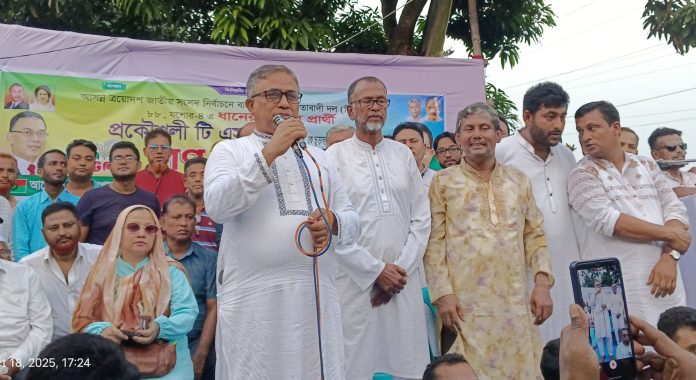 এতে প্রধান অতিথির বক্তব্যে তিনি বলেন, বিজয় নিশ্চিত করতে ভোটারদের দ্বারে-দ্বারে ধানের শীষ প্রতীকে ভোট চাওয়ার নির্দেশনা দেন বিএনপির ভারপ্রাপ্ত চেয়ারম্যান তারেক রহমান। সমাবেশে উপস্থিত ছিলেন, উপজেলা বিএনপির সাধারণ সম্পাদক শামছুর রহমান, পৌর বিএনপির সাধারণ সম্পাদক আব্দুর রহমান মিন্টু, উপজেলা বিএনপির সাংগঠনিক সম্পাদক এখলাচ হোসেন, পৌর বিএনপির সাংগঠনিক সম্পাদক মেহেদী খন্দকার ও হাবিবুর রহমান, উপজেলা বিএনপির সিনিয়র সহ-সভাপতি আব্দুস সালাম সৌদি, সহ-সভাপতি আনিসুর রহমান, প্রচার ও প্রকাশনা সম্পাদক হাফিজুর রহমান, উপজেলা বিএনপির দফতর সম্পাদক জাহাঙ্গীর হোসেন প্রমুখ।