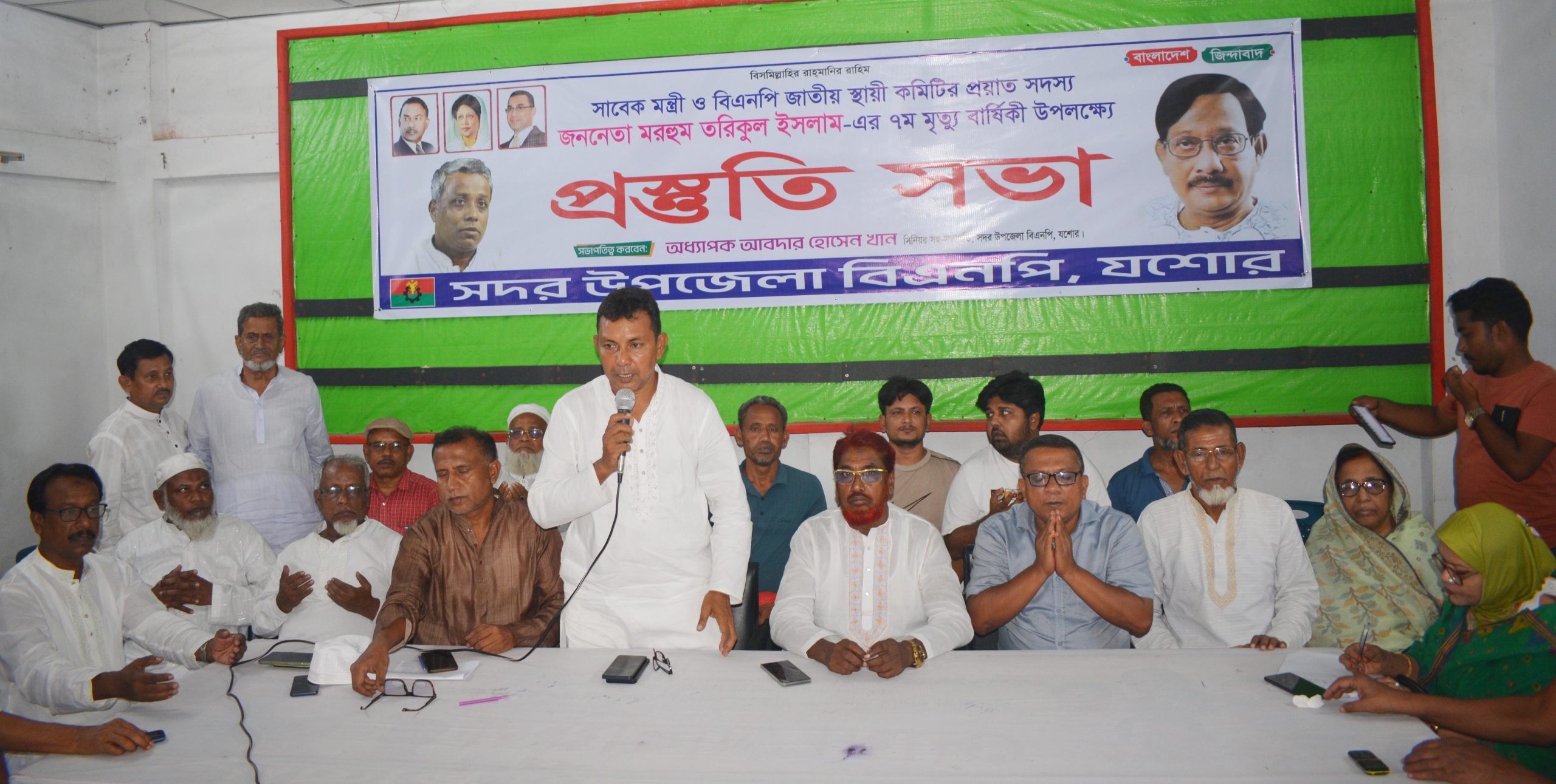 স্টাফ রিপোর্টার ॥ আগামী ৪ নভেম্বর বিএনপির জাতীয় স্থায়ী কমিটির সদস্য, সাবেক মন্ত্রী এবং দেশের দক্ষিণ-পশ্চিম জনপদের উন্নয়নের কারিগর খ্যাত তরিকুল ইসলামের সপ্তম মৃত্যুবার্ষিকী। বরেণ্য এই রাজনীতিকের মৃত্যুবার্ষিকী যথাযোগ্য মর্যাদায় পালন উপলক্ষে যশোর সদর উপজেলা বিএনপির উদ্যোগে প্রস্তুতি সভা অনুষ্ঠিত হয়েছে।