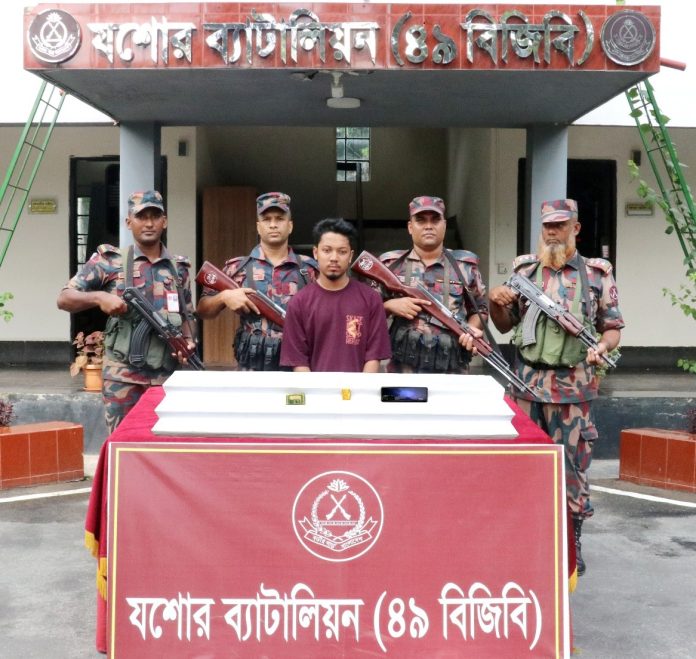 যশোরে ১ টি স্বর্ণের বারসহ পাচারকারী আটক