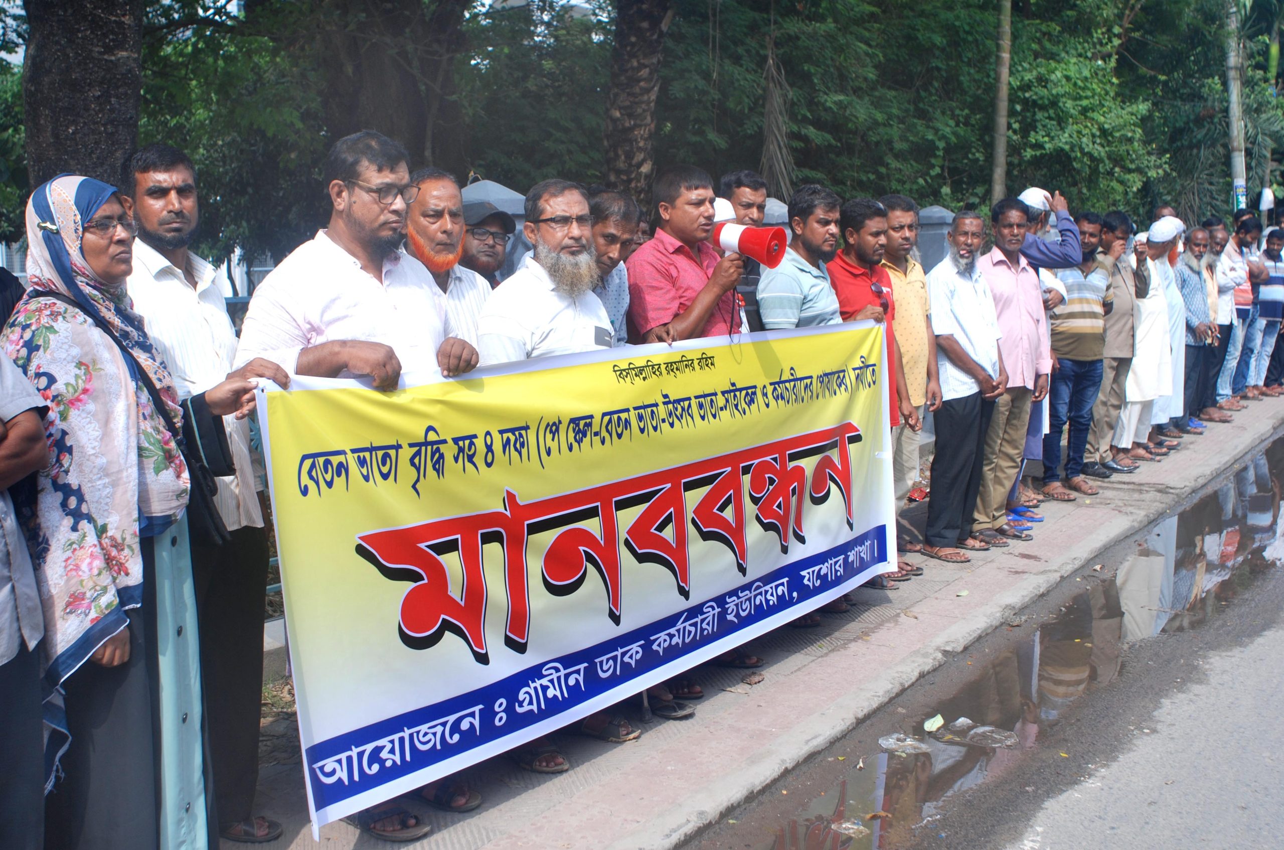 যশোরে গ্রামীণ ডাক কর্মচারীদের মানববন্ধন