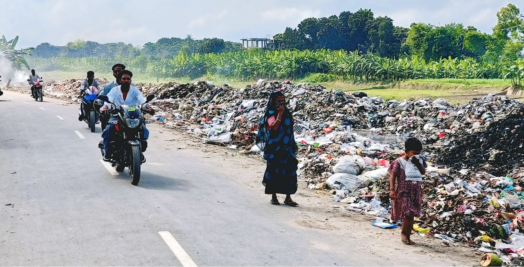 সরেজমিনে দেখা যায়, বাইপাস সড়কের পাশে রাস্তা ঘেঁষে জমে আছে নানান ধরনের বর্জ্য পচা সবজি, পলিথিন, নোংরা কাপড়, হাসপাতালের ফেলা আবর্জনাসহ নানা কিছু। এসব ময়লা থেকে নির্গত দুর্গন্ধে হাঁটাচলা করা দুষ্কর হয়ে পড়েছে। বিশেষ করে সকাল ও দুপুরে স্কুলগামী শিক্ষার্থী ও অফিসগামী মানুষদের দুর্ভোগ পোহাতে হচ্ছে সবচেয়ে বেশি।
