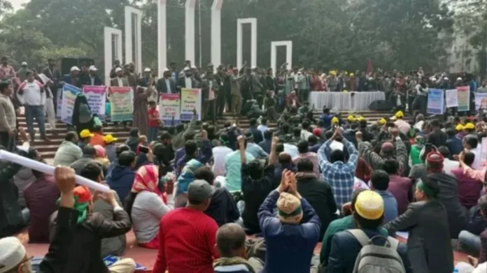 লোকসমাজ ডেস্ক ॥ দশম গ্রেডে বেতনসহ তিন দফা দাবি আদায়ে তৃতীয় দিনের মতো প্রাথমিক বিদ্যালয়ের সহকারী শিক্ষকরা রাজধানীর কেন্দ্রীয় শহীদ মিনারে অবস্থান কর্মসূচি পালন করছেন। এতে সাধারণ শিশু শিক্ষার্থীরা ভোগান্তিতে পড়েছে। ব্যহত হচ্ছে পাঠদান। সোমবার (১০ নভেম্বর) সকাল থেকেই শহীদ মিনারে জড়ো হতে থাকেন শিক্ষকরা।
