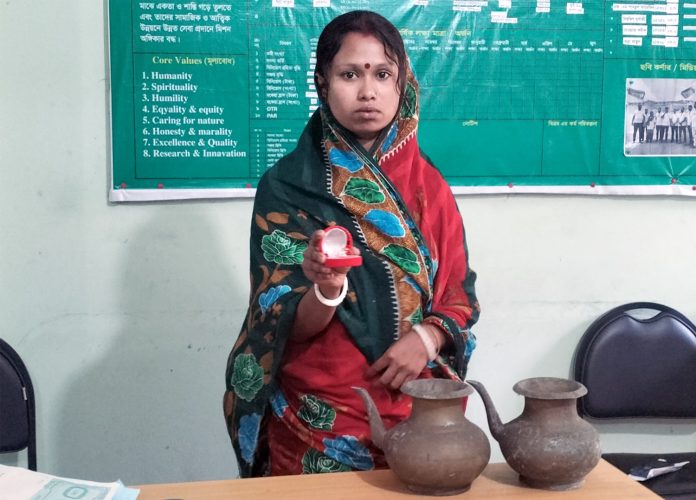 চিতলমারী (বাগেরহাট) সংবাদদাতা ॥ বাগেরহাটের চিতলমারীতে গৃহবধূ শ্রাবণী হীরার বদনা, নাকফুল ও আংটি ফেরেত দিয়েছেন ডাম এনজিও’র কর্মকর্তারা। শখের বদনা, নাকফুল ও আংটি ফিরে পেয়ে ওই গৃহবধূ খুশি। এ ঘটনায় ডাম ফাউন্ডেশন ফর ইকোনমিক ডেভেলপমেন্ট (ডিএফইডি) কর্তৃপক্ষ সংশ্লিষ্ট শাখার ম্যানেজার বাসুদেব দেবনাথ ও মাঠকর্মী নেওয়াজ শরীফকে সাময়িক বরখাস্ত করেছেন।