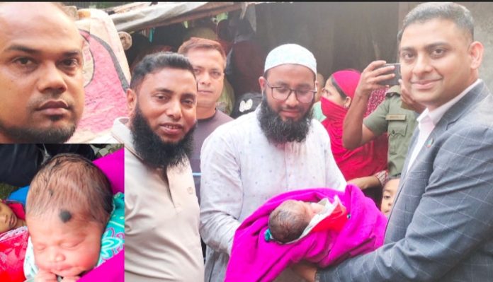 গ্রামের আলী হোসেন কালু ও তার স্ত্রী নারগিস বেগম প্রথমে শিশুটিকে দেখতে পান। মানবিকতার এক দৃষ্টান্ত স্থাপন করে তারা শিশুটিকে কোলে তুলে নেন, কাপড়ে জড়িয়ে উষ্ণতা দেন এবং প্রাথমিক সেবা দেন। পরে খবর যায় বেনাপোল পৌরসভায়।