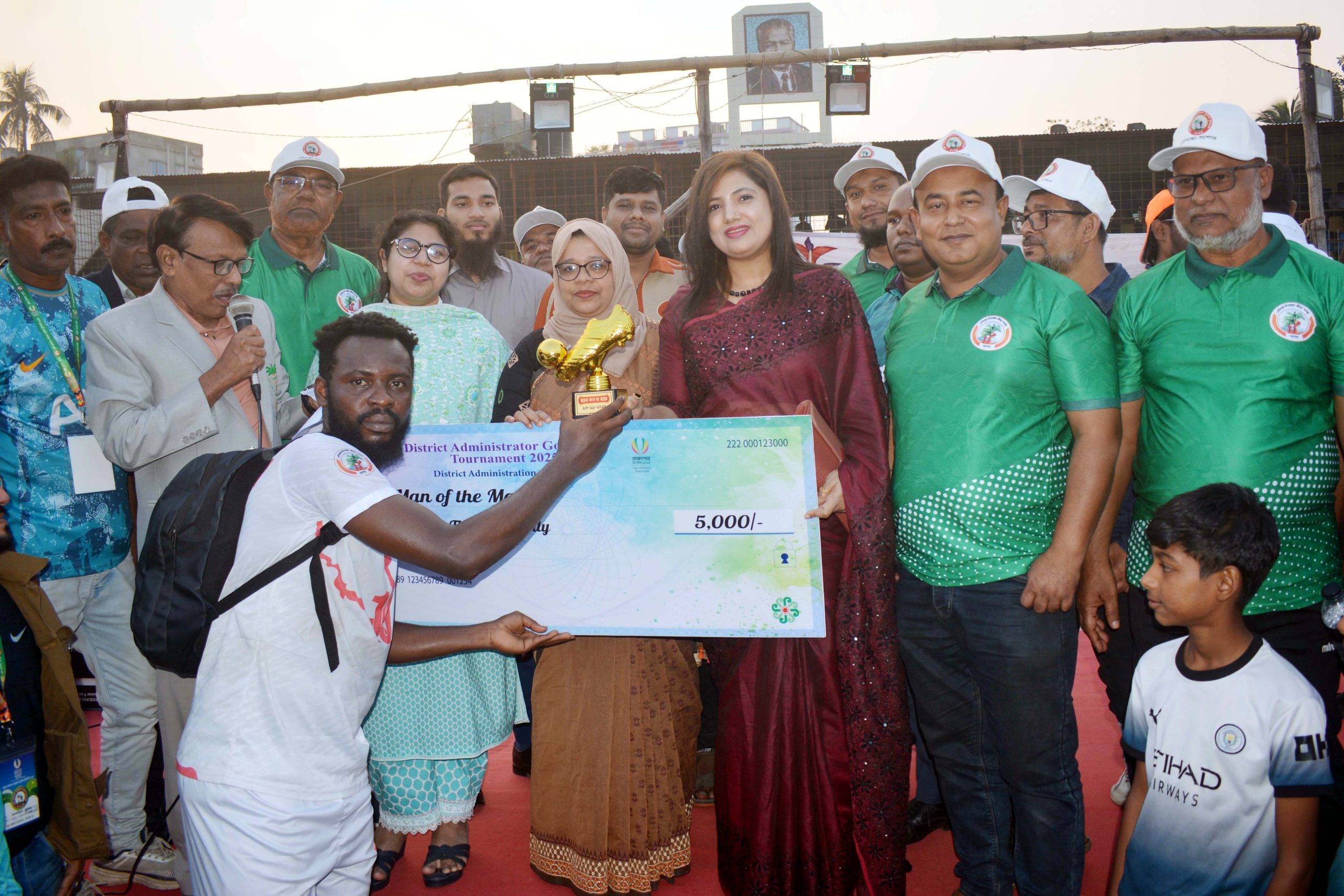 চৌগাছা উপজেলা নির্বাহী কর্মকর্তা শাহিনুর আক্তার তার হাতে সেরা খেলোয়াড়ের পুরস্কার তুলে দেন।