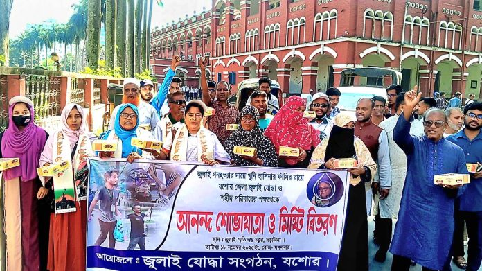 গণহত্যার রায়কে স্বাগত জানিয়ে যশোরে শহীদ পরিবারের শোভাযাত্রা